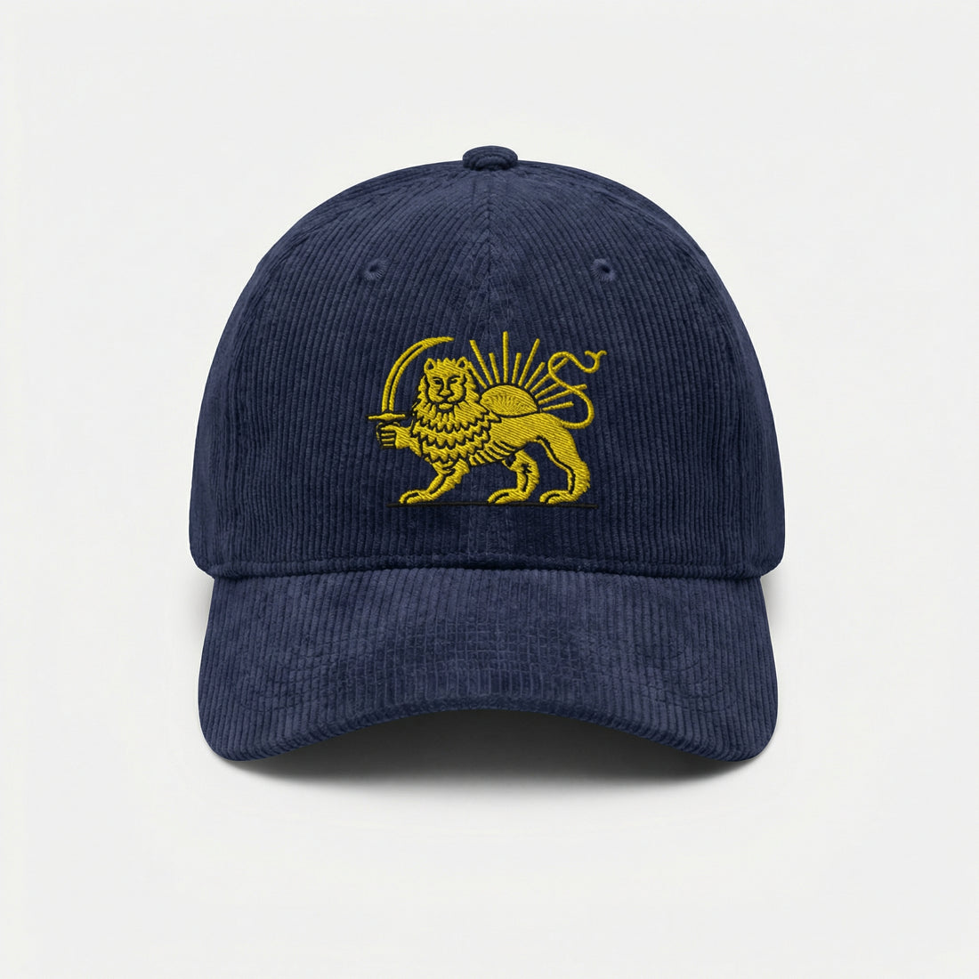 Custom Embroidered Persian Lion and Sun Hat - Iranian Heritage Corduroy Cap