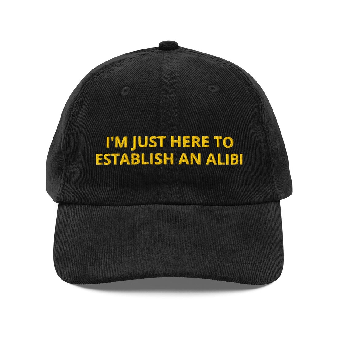 I'm Just Here To Establish An Alibi Embroidered Corduroy Dad Hat | Custom Embroidery Hat...