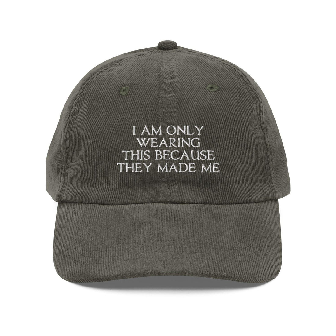 I Am Only Wearing This Because They Made Me Embroidered Corduroy Dad Cap, Funny Gift...