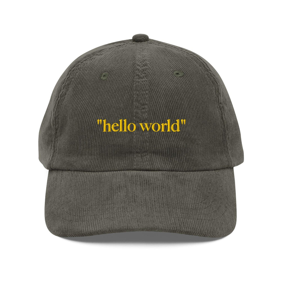 Hello World Custom Embroidered Corduroy Hat | Classic Embroidered Cap | Funny Programmer Dad Hat...