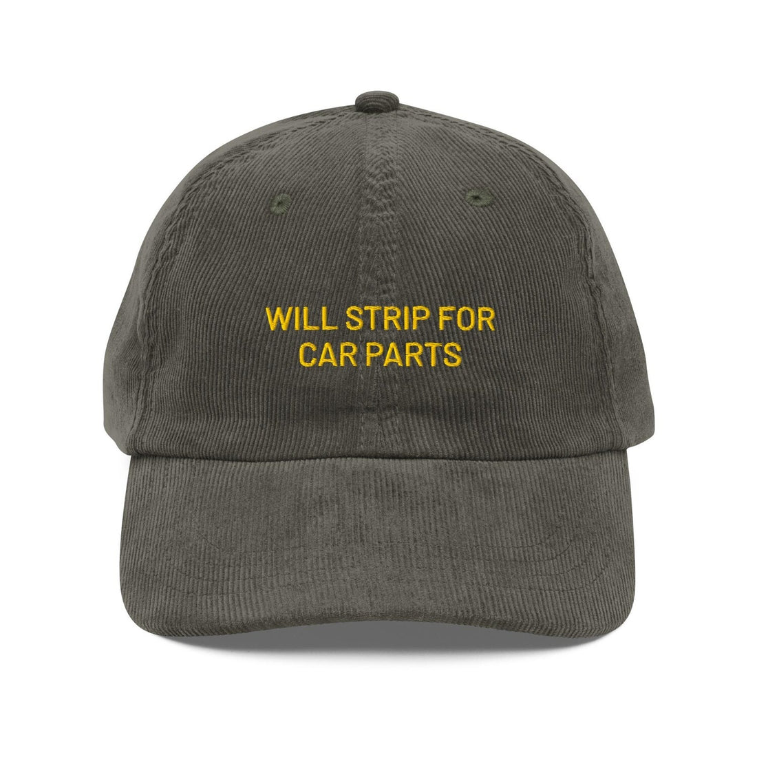 Will Strip for Car Parts Embroidered Corduroy Hat | Funny Car Guy Baseball Cap |...