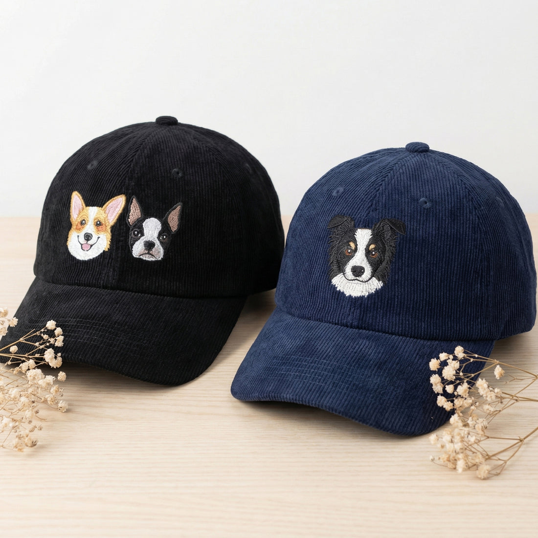 Custom Embroidered Pet Portrait Corduroy Hat – Personalized Dog & Cat Photo Cap | Multi-Pet...