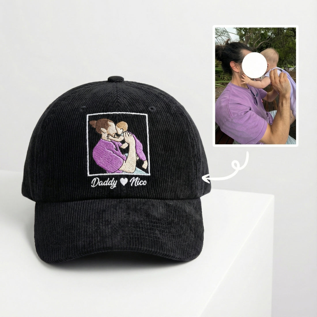Custom Embroidered Portrait Corduroy Hat from Photo – Personalized Family Photo Dad Cap | Unique...