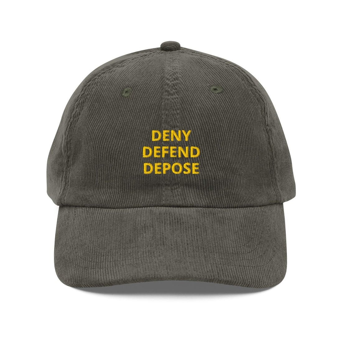 Deny Defend Depose Embroidered Corduroy Hat | Personalized Embroidered Corduroy Hat | Bold Gifts for...