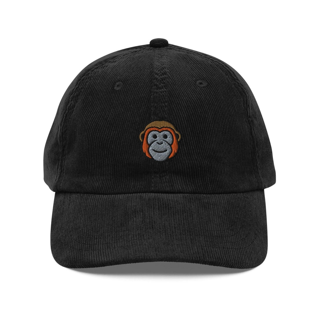 Custom Embroidered Orangutan Face Corduroy Hat - Great Ape Gift - Cute Vintage Hat -...