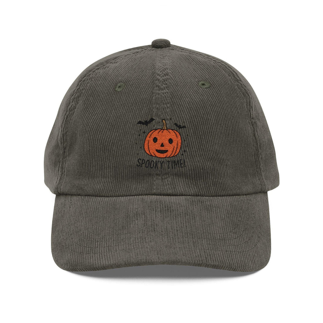 Custom Embroidered Spooky Time Corduroy Hat - Ghost Hat - Autumn Hat - Thanksgiving Embroidered...