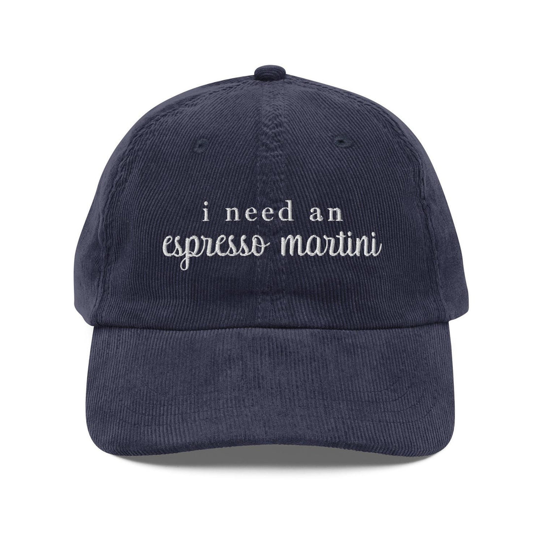 I Need An Espresso Martini Hat | Caffeine & Chaos Vibes | Funny Embroidered Corduroy...