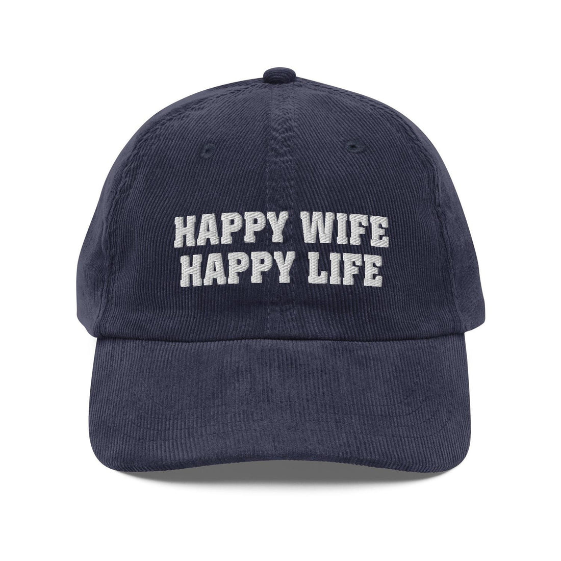 Happy Wife Happy Life Baseball Cap - Custom Embroidered Corduroy Cap, Funny Dad Hat, Gift...