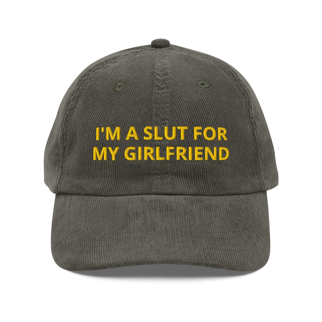 I'm a Slut For My Girlfriend Hat | Funny Valentine's Day Corduroy Cap for Boyfriend...