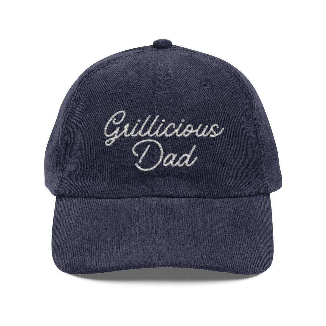 Custom Embroidered Grillicious Corduroy Hat - Adjustable Classic Cap - Fathers Day Gift for Dad...