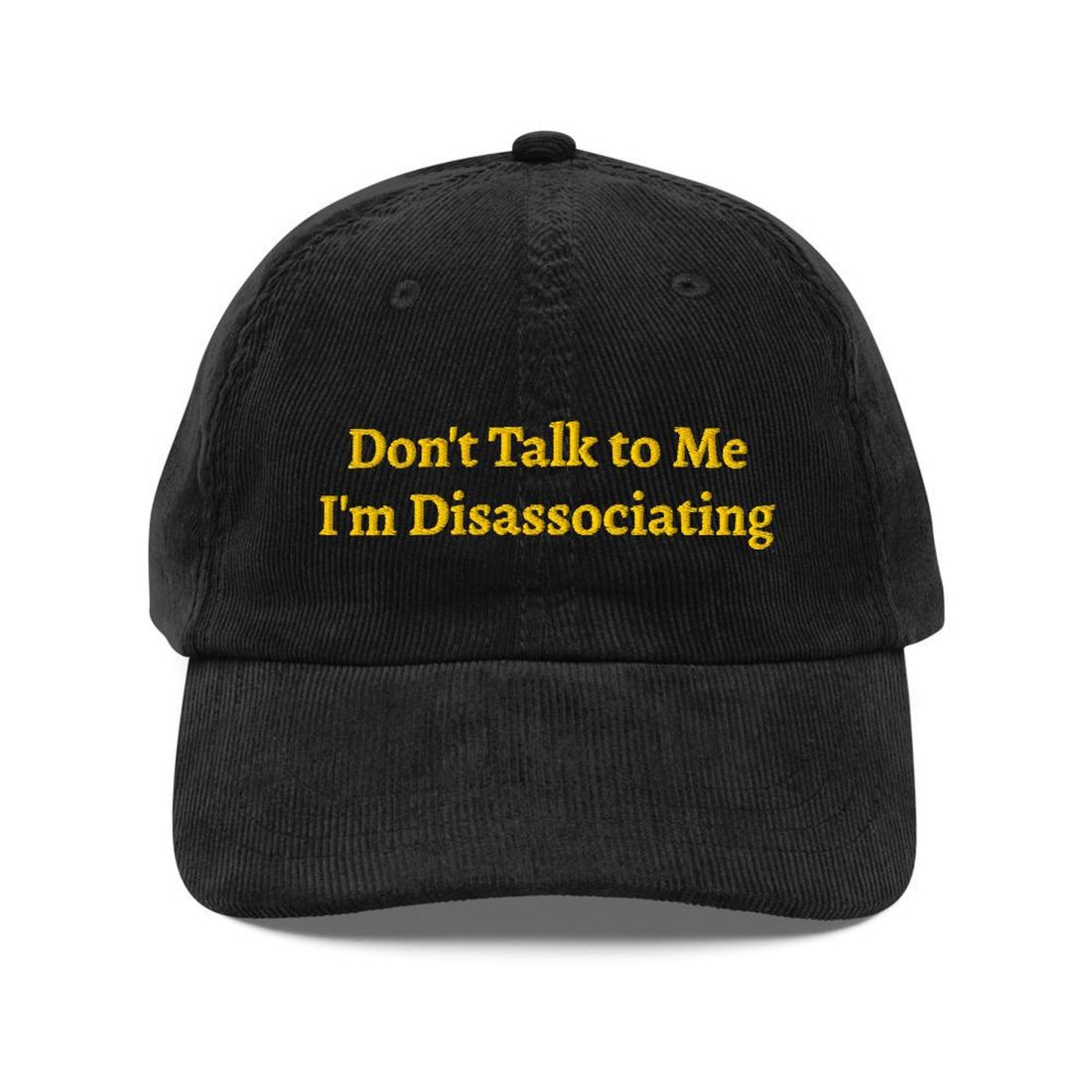 Funny 'Don't Talk to Me I'm Dissociating' Corduroy Hat | Custom Embroidered Baseball Dad Cap...