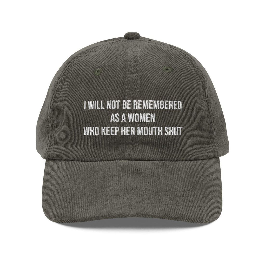 Custom Embroidered I Will Not Be Remembered as a Woman Who Kept Her Mouth Shut Hat
