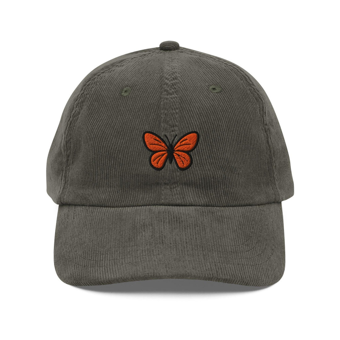Custom Embroidered Butterfly Embroidered Corduroy Hat - Monarch Butterfly Gift - Cute Embroidery Vintage Hat...