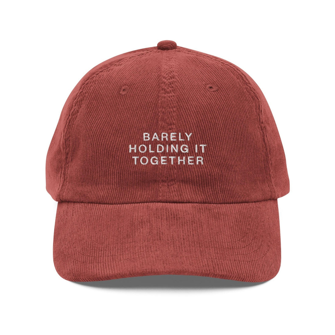 Custom Embroidered Barely Holding It Together Corduroy Hat - Mental Health Humor Hat - Relatable...