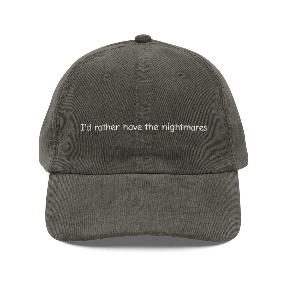 I'd Rather Have the Nightmares Hat | Custom Embroidered Corduroy Cap | Dark Humor Statement...