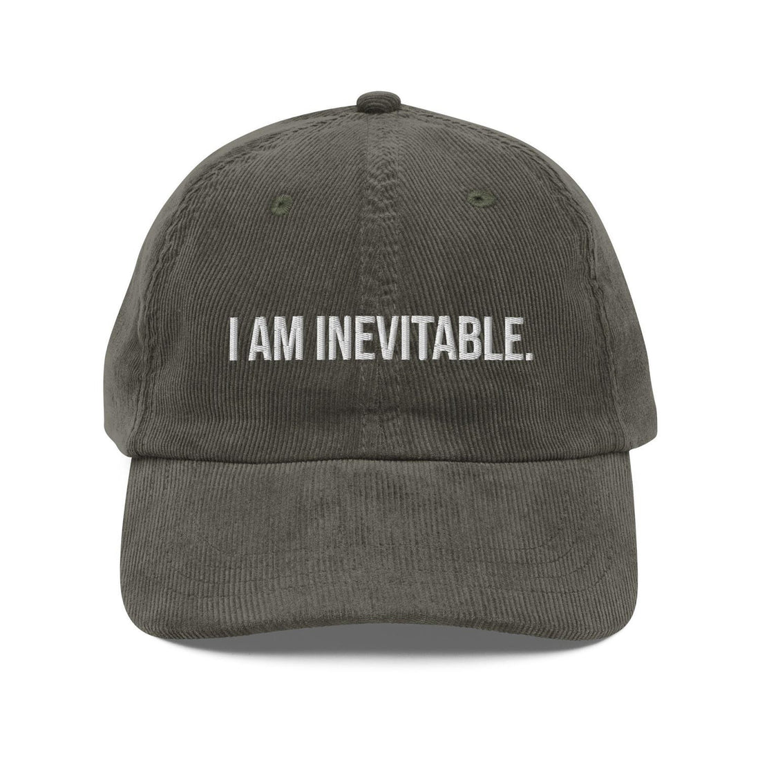 I Am Inevitable Embroidered Corduroy Cap | Custom Embroidered Corduroy Hat for Movie Fans, Pop...