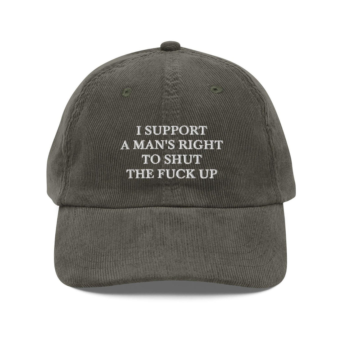I Support A Man's Right To Shut The F* Up Corduroy Cap | Custom Embroidered...