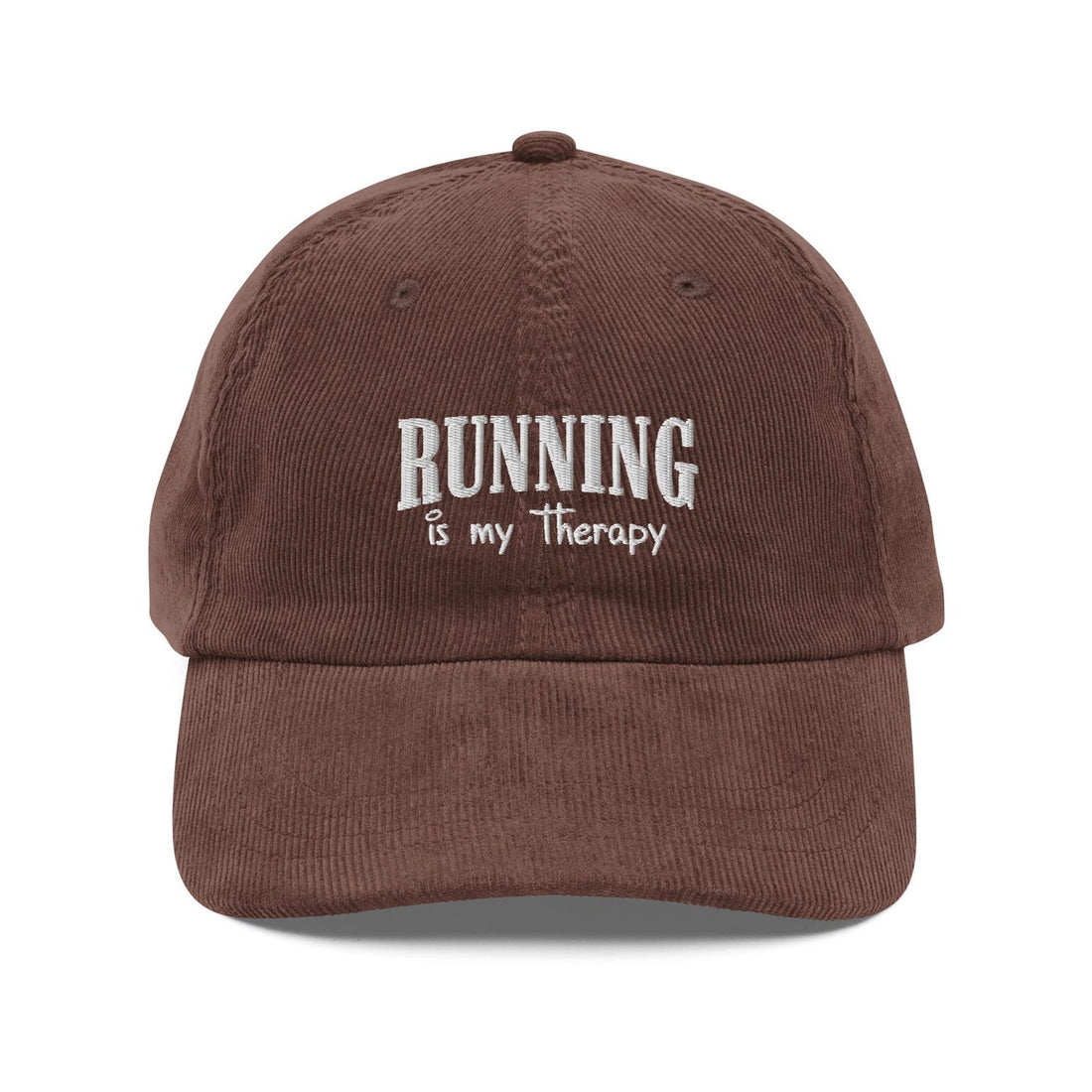 Running Is My Therapy Embroidered Corduroy Cap – Stylish Runner’s Hat | Hiking & Gym...