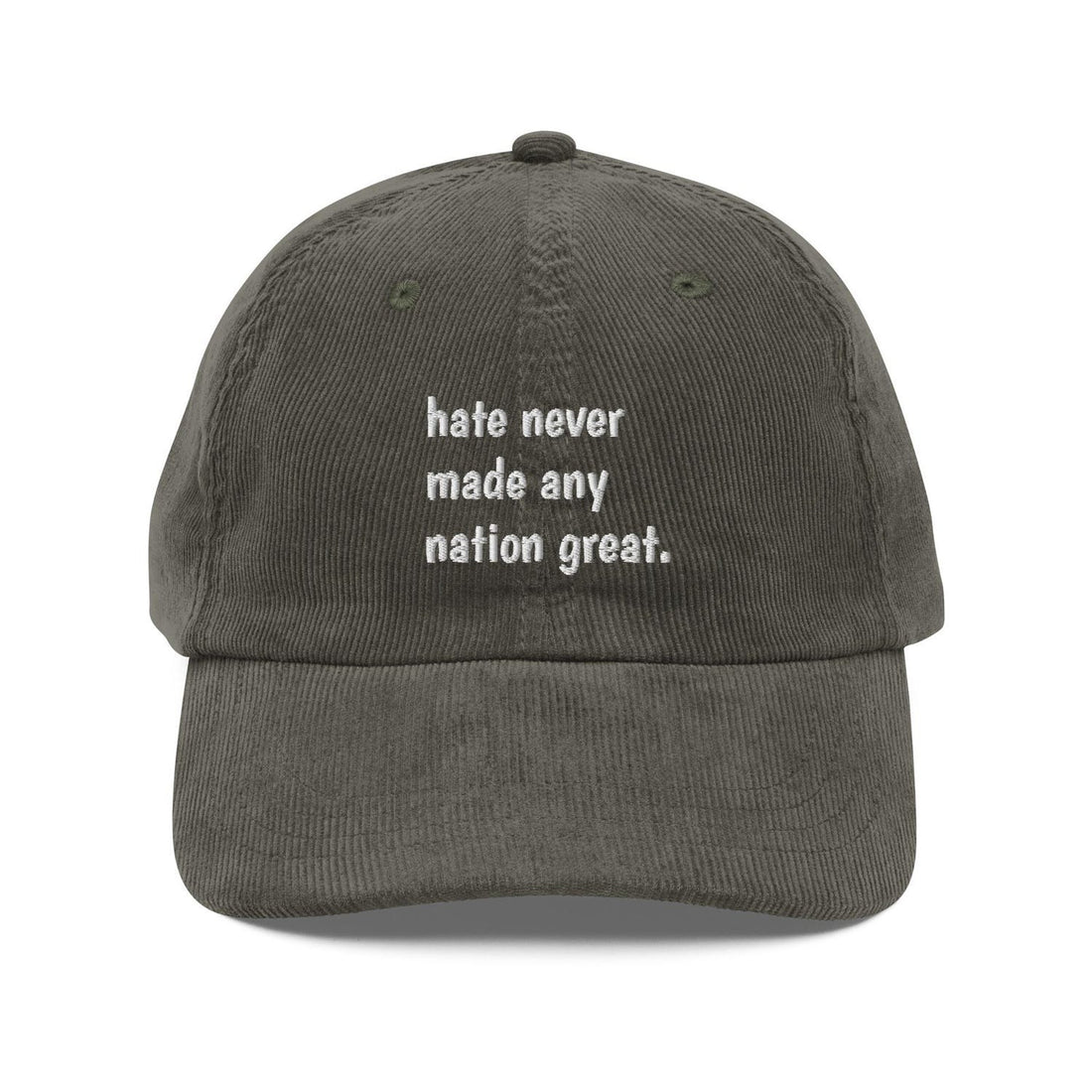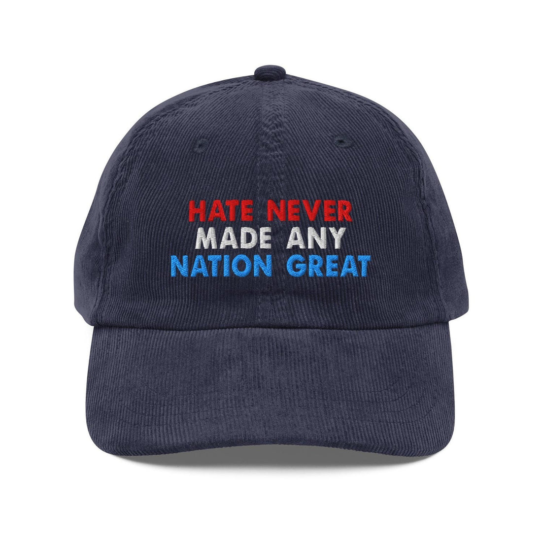 Hate Never Made Any Nation Great Hat | Powerful Political Embroidered Cap | Bold Statement...