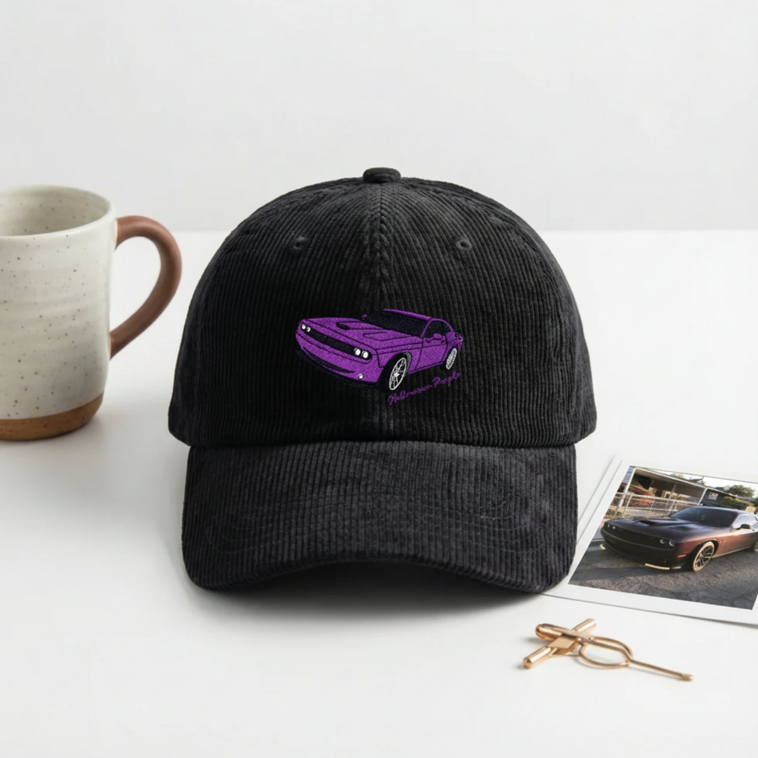 Custom Car Portrait Hat – Personalized Photo Embroidered Corduroy Dad Cap | Unique Gift for Car Enthusiasts & Men