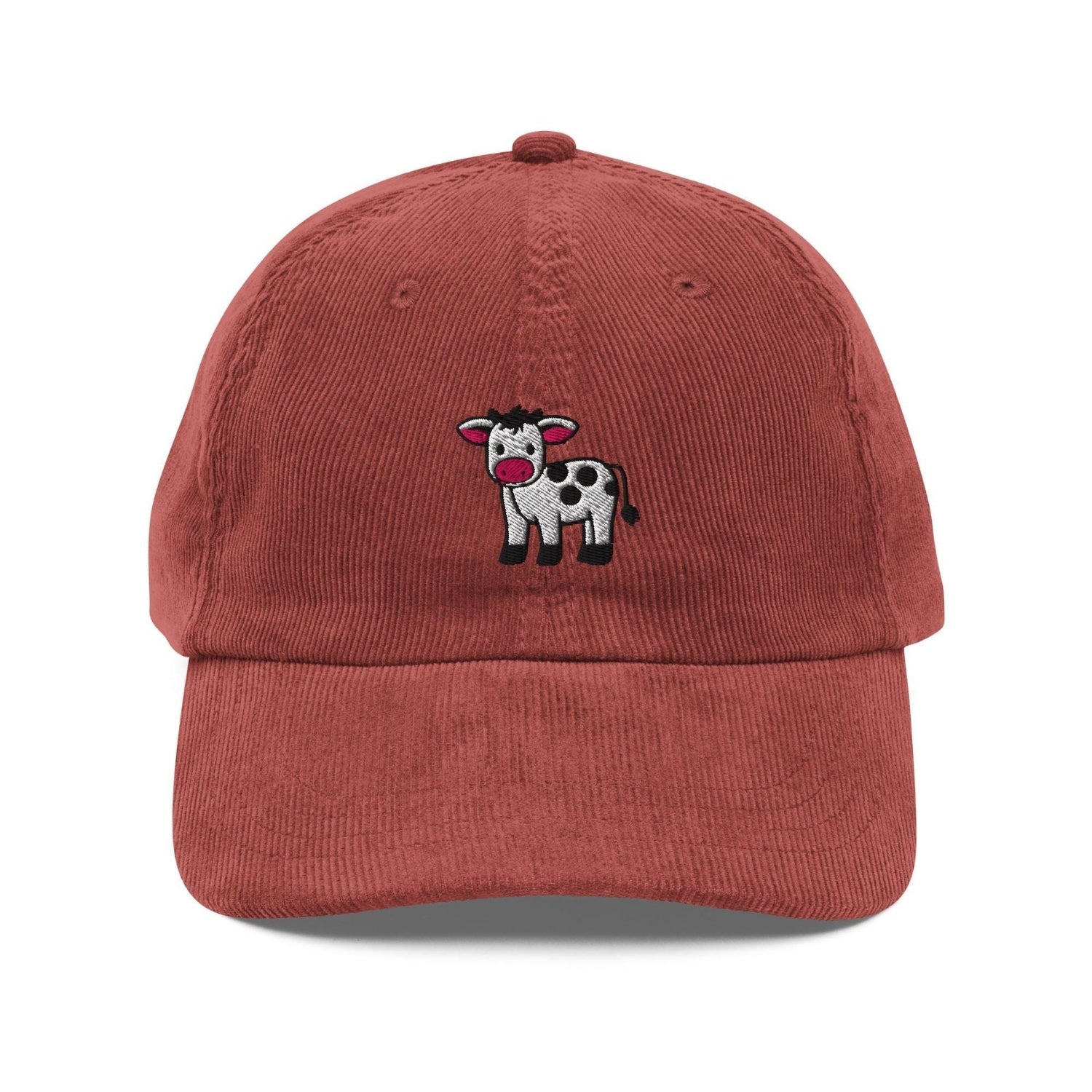 Custom Embroidered Calf Corduroy Hat - Baby Cow Gift - Cute Cow Vintage Hat - Sustainable Hat - Multiple Colors For Him & Her Hat