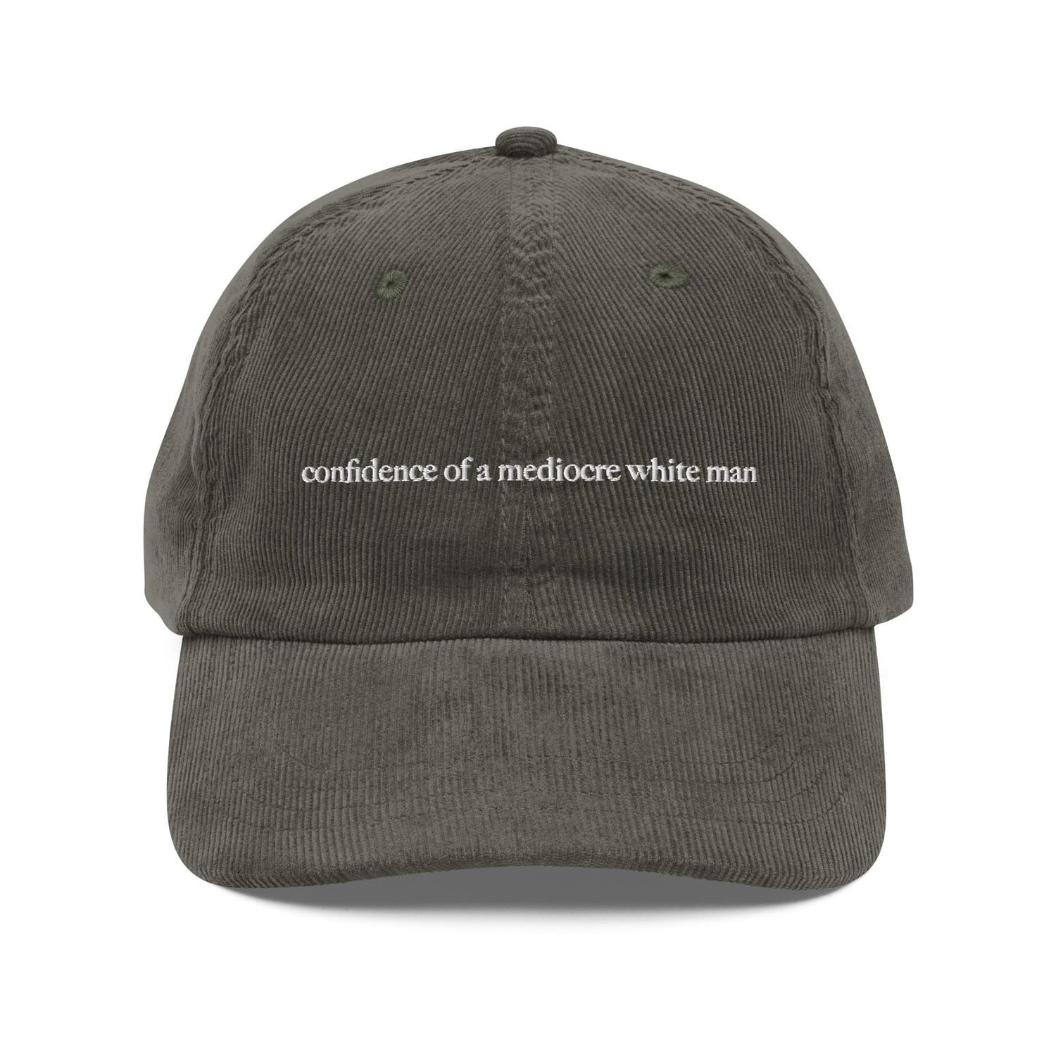 Confidence Of A Mediocre White Man Hat | Unshakable & Unapologetic | Funny Embroidered Corduroy Dad Cap | Adjustable and Bold Statement Hat