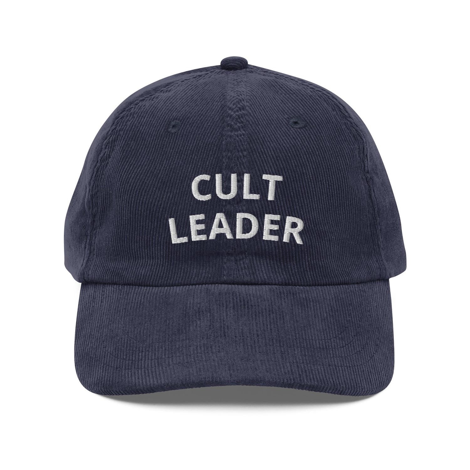CULT LEADER Embroidered Hat | Custom Corduroy Embroidered Cap | Gen Z Meme Baseball Cap | Funny & Weird Hat | Perfect Gift for Trendsetters
