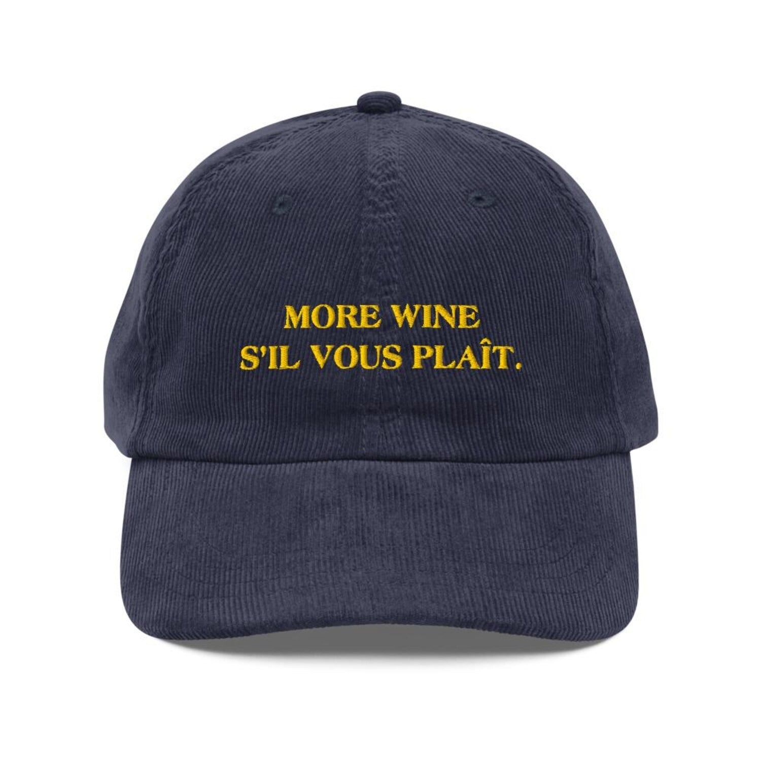More Wine S'il Vous Plait Embroidered Corduroy Hat | Personalized Embroidered Corduroy Hat | Gifts for Wine Lovers | Wine Enthusiast Gift