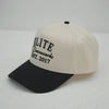 Built from 65/35 polyester-cotton twill with a structured five-panel shape, pre-curved visor, and adjustable snapback closure.