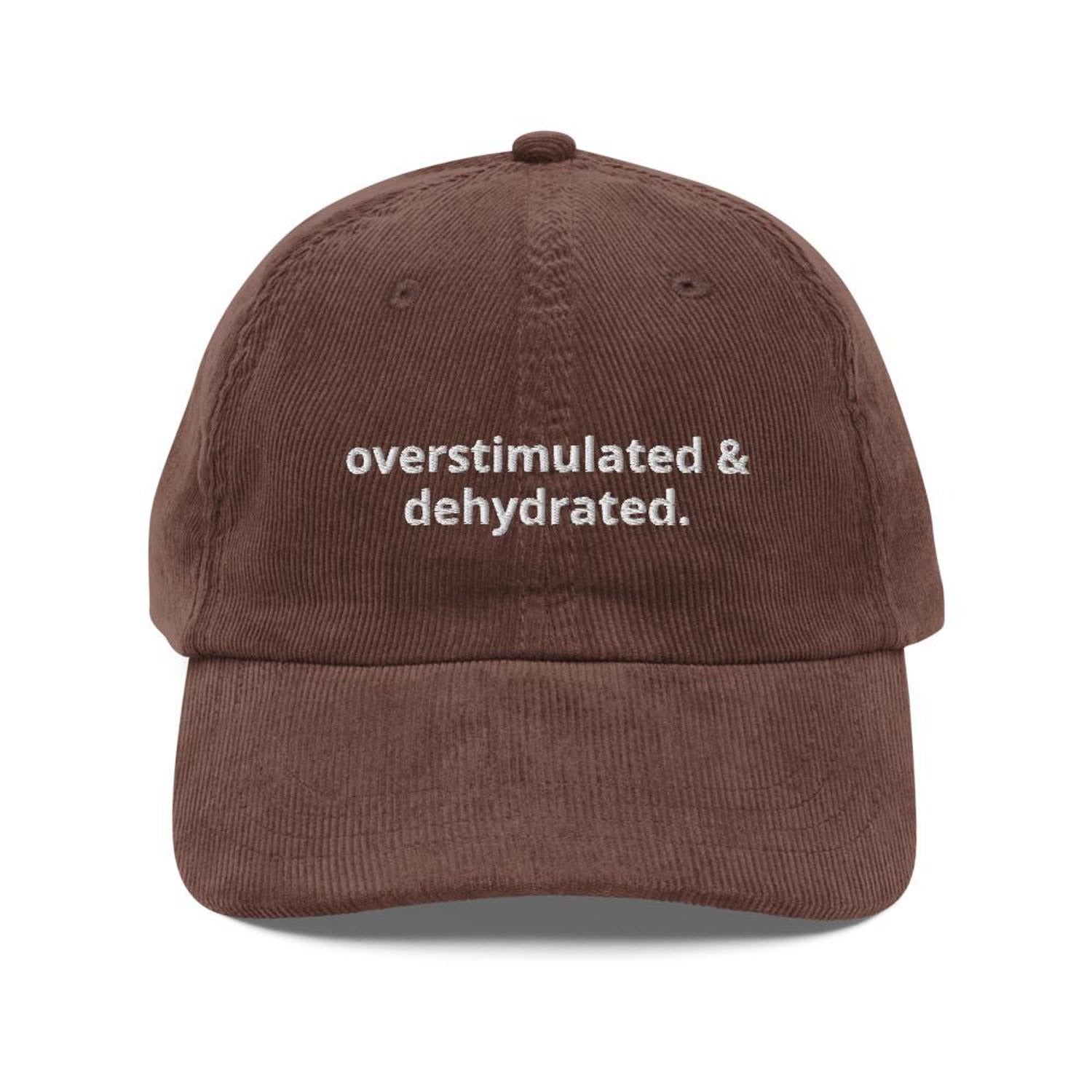 Overstimulated & Dehydrated Hat | Custom Embroidered Corduroy Hat | Funny and Relatable Gift for Introverts, Overthinkers, and Busy Minds