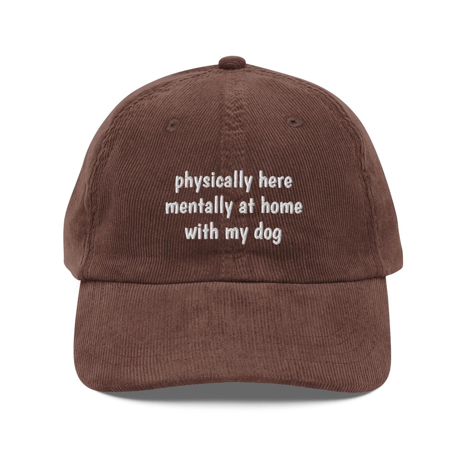 Physically Here Mentally With My Dog Hat | Funny Custom Embroidered Corduroy Cap | Bold Statement Corduroy Dad Hat | Gift for Dog Lovers