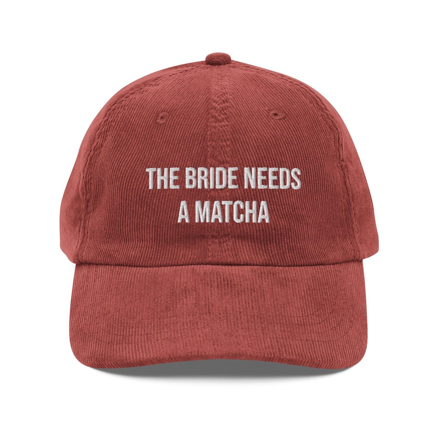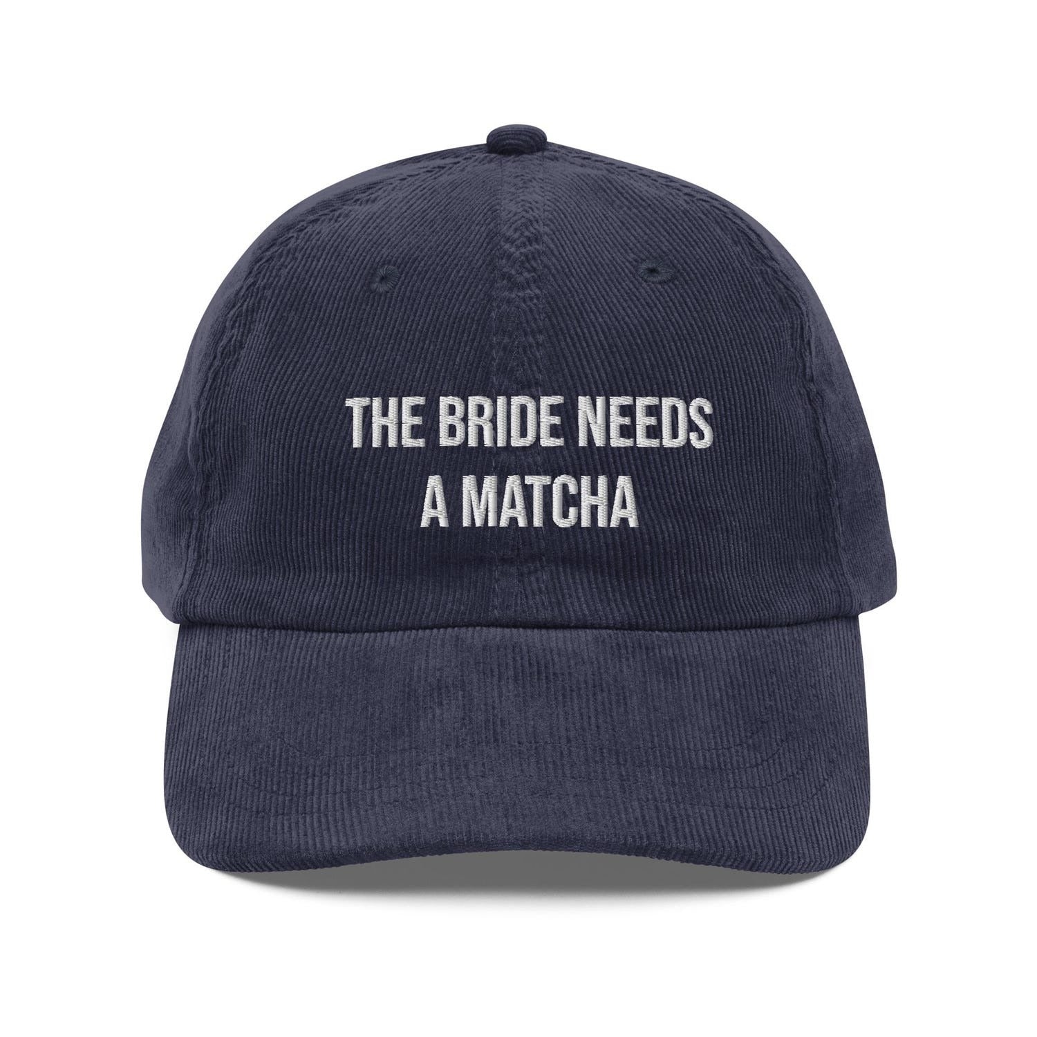 The Bride Needs a Matcha Hat | Sassy Bridal Shower Embroidered Cap | Fun Statement Custom Corduroy Dad Hat | Gift for Matcha Obsessed Brides
